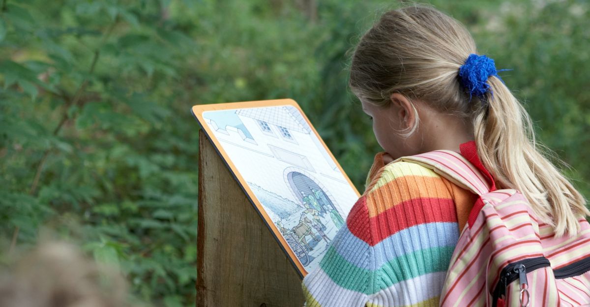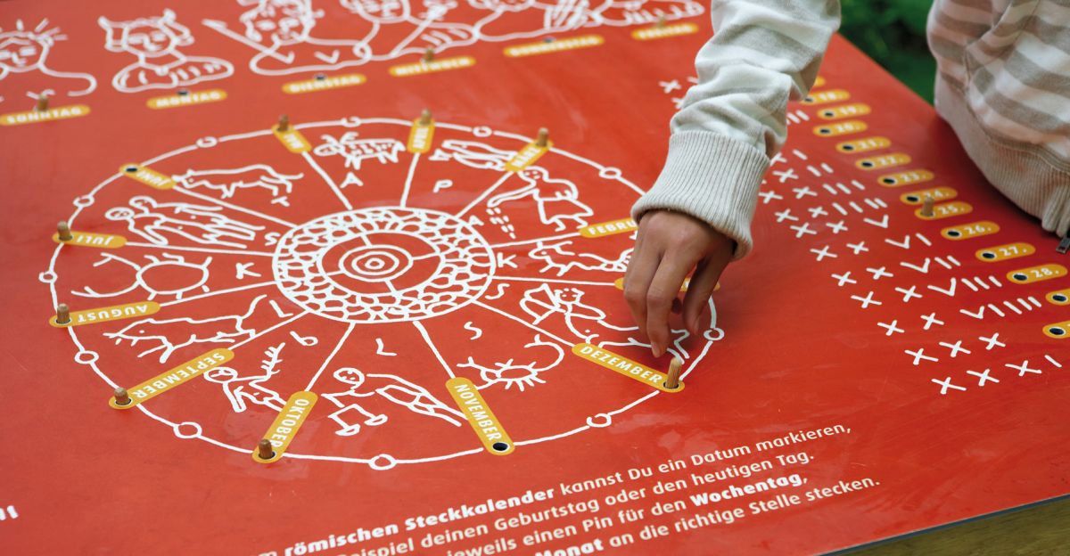 Kinderlehrpfad im Wald mit interaktiven Stationen zum Thema Römer und Limes. Freizeitpark Lochmühle [1998]