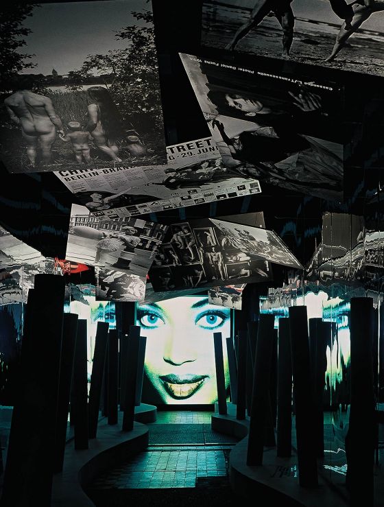 Mit 175 Bildern und 46.100 Zeichen Text transportieren die mehrteiligen Displays den Hauptteil der Inhalte der Ausstellung. Das Gestaltungskonzept musste diese Masse an Information klar strukturieren und Hierarchien zur Orientierung schaffen, gleichzeitig aber so flexibel sein, dass die unterschiedlichen Bildformate jeweils optimal präsentiert werden konnten.